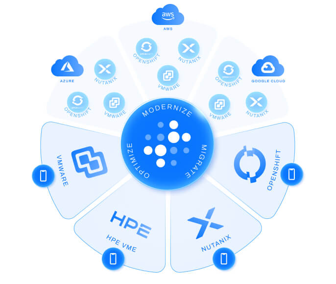 A single unified platform to migrate, optimize, and modernize workloads across hybrid and multi-cloud environments.