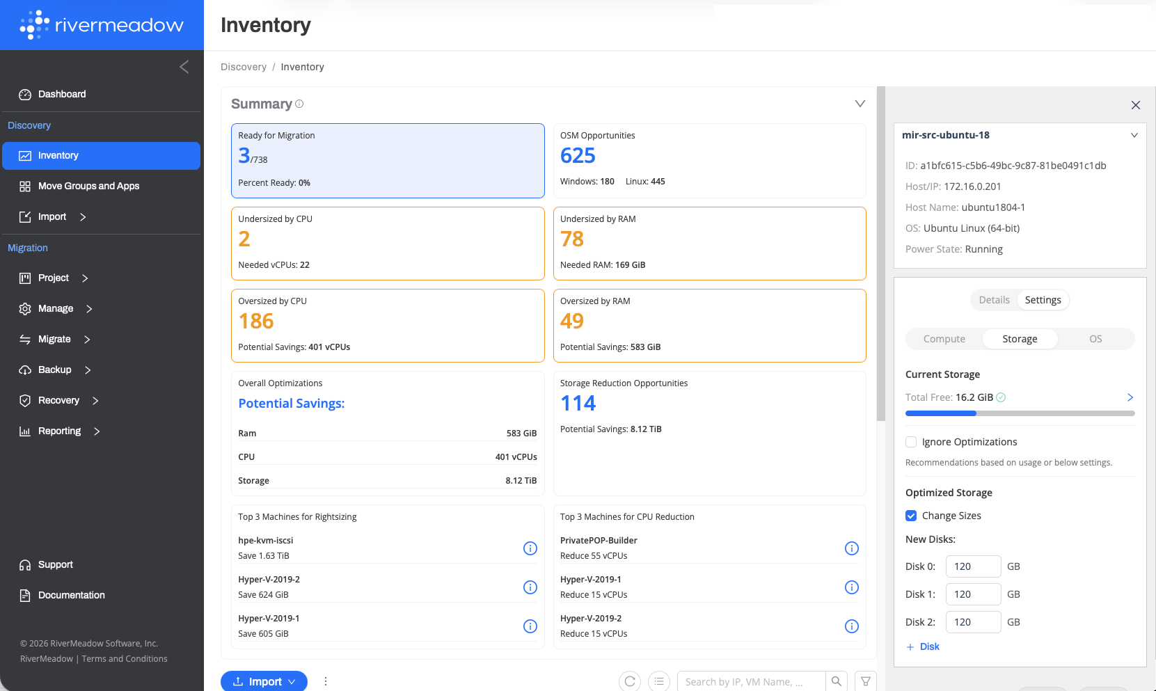 Identify overprovisioned servers (CPU, Memory, and Storage) that are ideal candidates for optimization during the migration to avoid inefficient resource allocation and increased cloud spend due to performing a simple "lift and shift" migration.