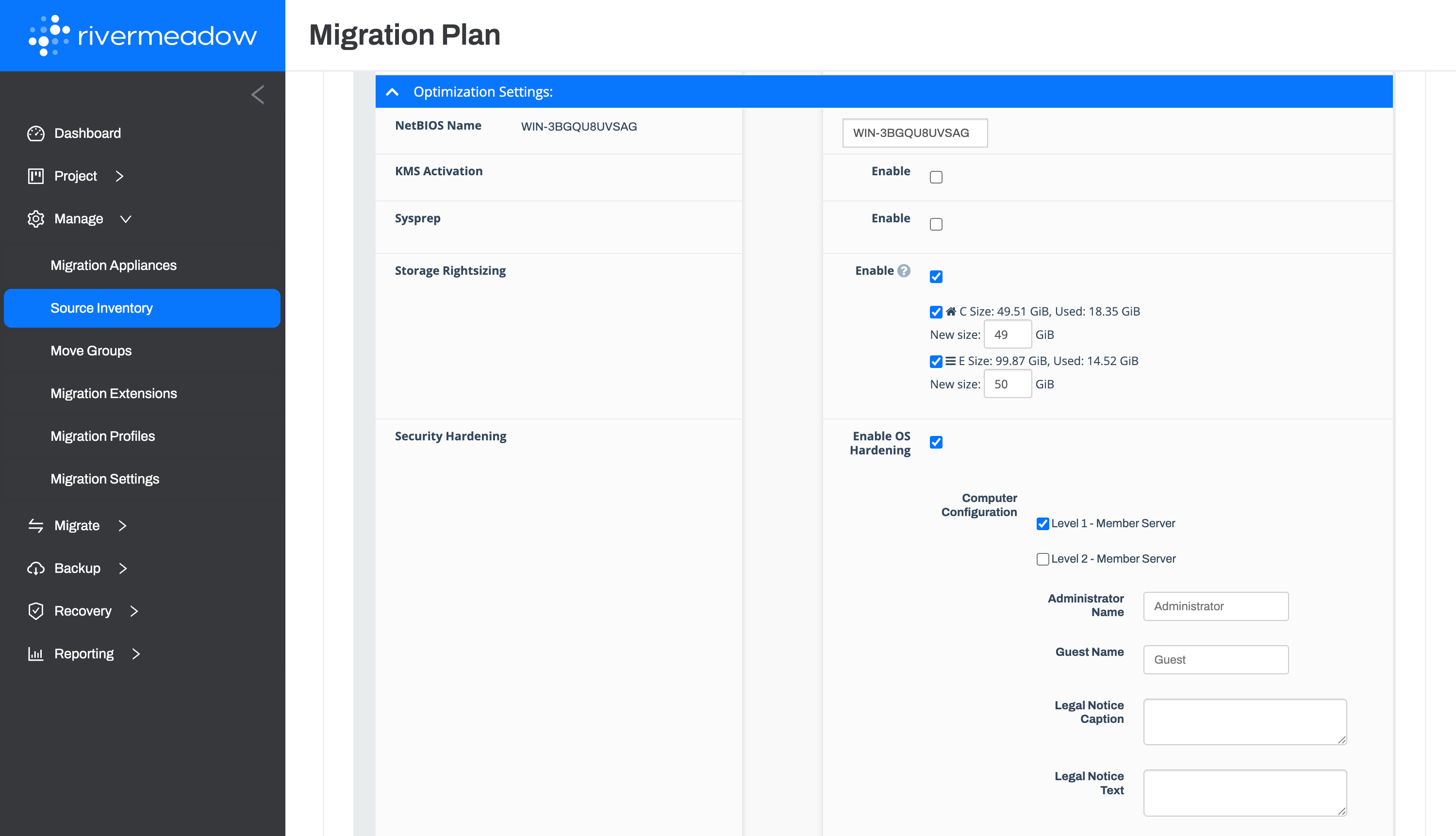 Optimize over-provisioned servers with server rightsizing that analyzes historical performance data to provide optimization recommendations prior to migration.